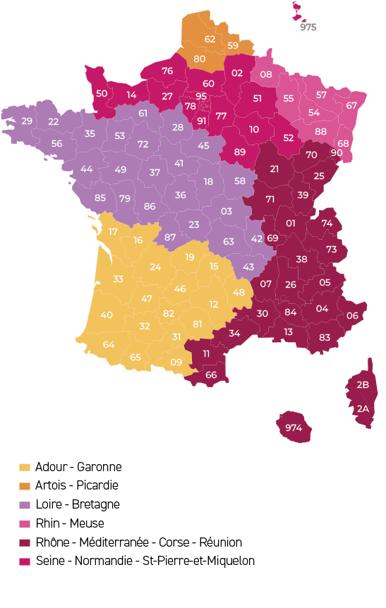 Accéder au siteAfin d'entrer en concordance avec l'organisation étatique des Agences de l'Eau, les fédérations départementales de pêche et de protection du milieu aquatique se sont rassemblées en Unions de Bassin. Ces dernières aident les fédérations et leurs associations à l'échelle des 6 grands bassins hydrographiques.
